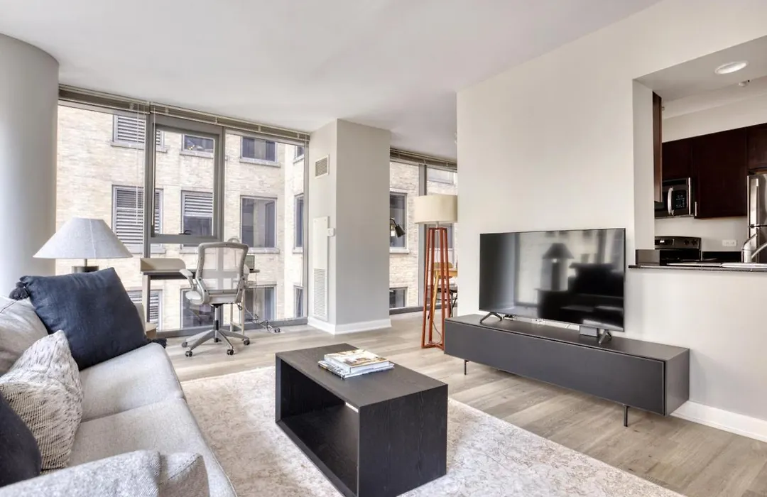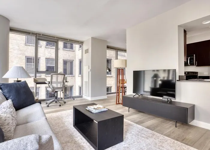 À moins de 350 mètres de la station de métro Merchandise Mart, le domicile de 88 m² est non trop loin de Magnificent Mile. Le domaine est à 2 km du centre de Chicago.